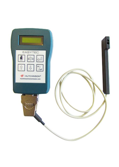 Easytec是一款电子频率测量仪器,包括传感器和微处理器。它可以帮助你测量皮带的频率,进而测试皮带张力(振动弦律)
